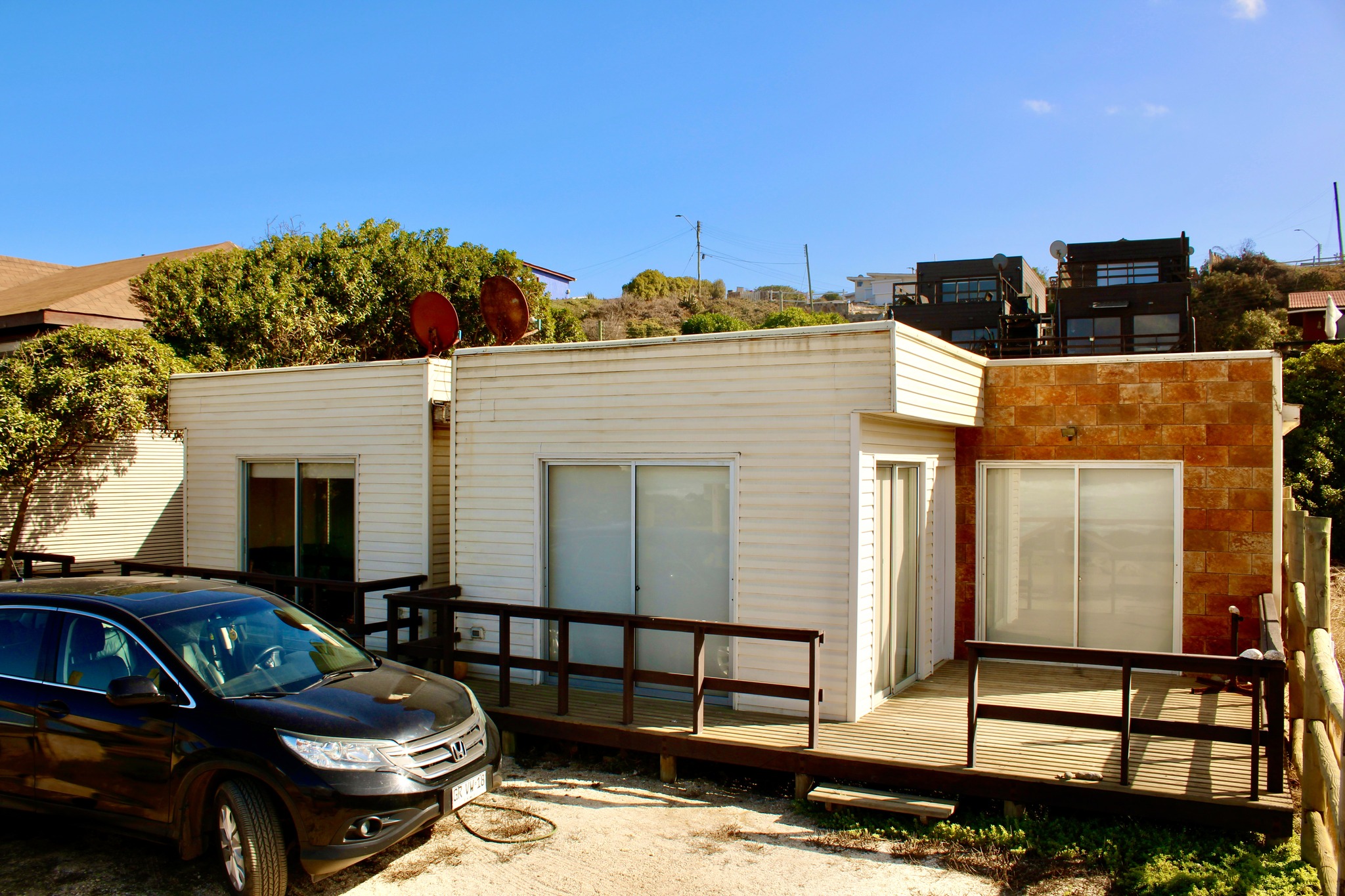 Hermosa propiedad con dos casas simétricas en primera línea frente al mar ubicada en el roquerío de Los Molles. Se venden amobladas.