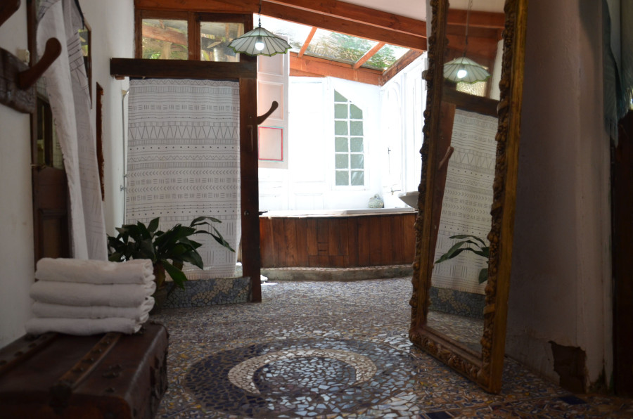 Otra cabaña es de un ambiente con un dormitorio, un baño y una cocina. En el exterior existe una tinaja de adobe, en la cual se puede usar con agua caliente. Por último, existe un bello fogón para compartir junto con familiares y amistades.