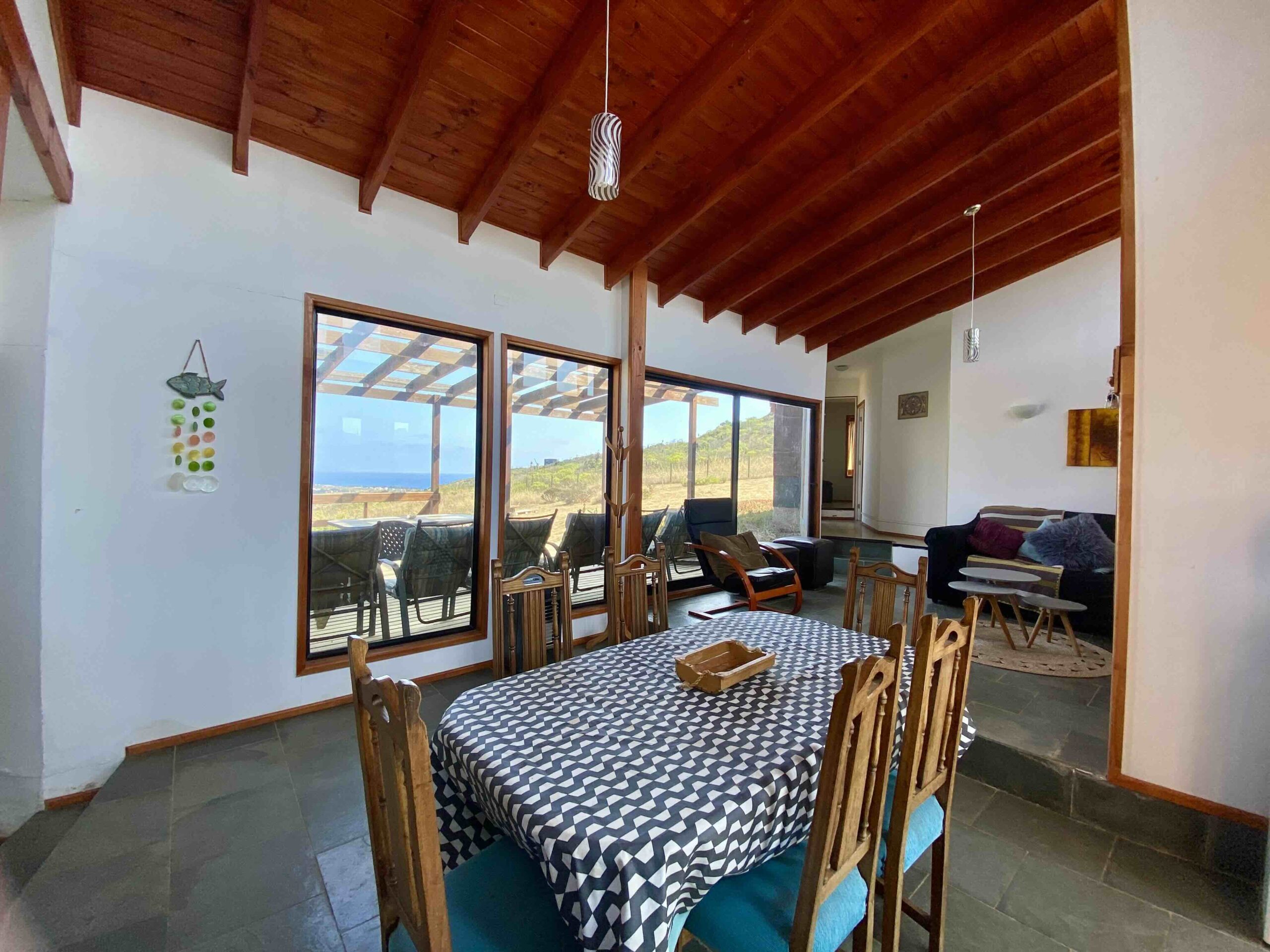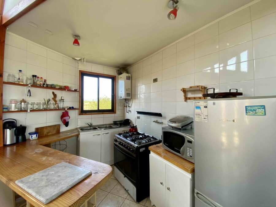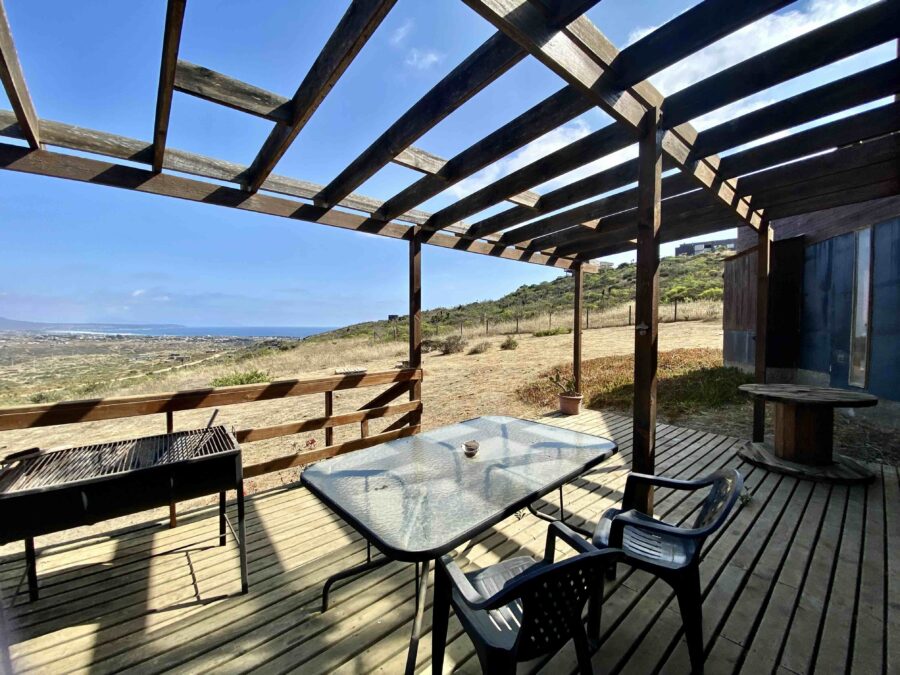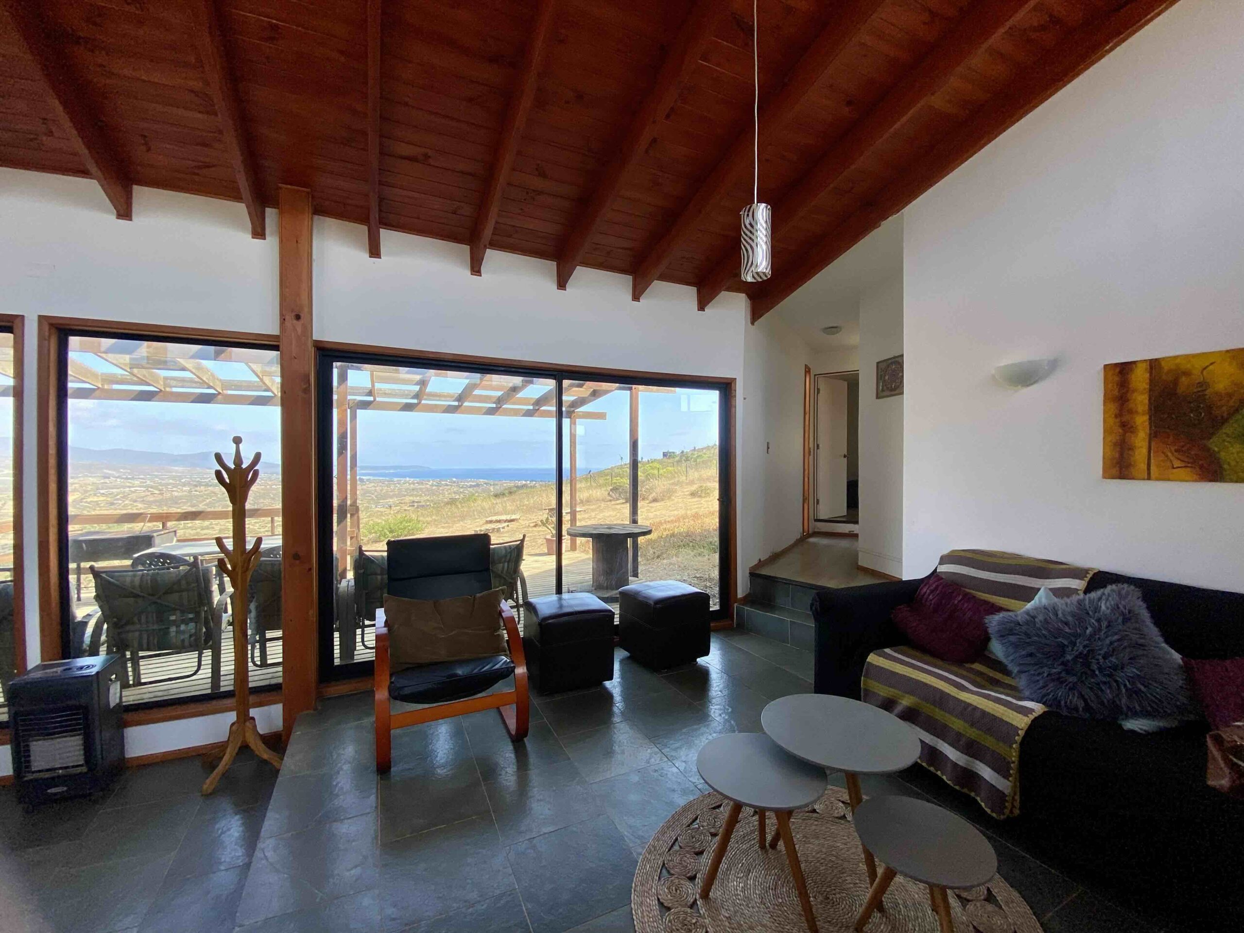 Casa ubicada en un entorno natural con vistas abiertas hacia el mar, en un terreno de 5.000 m². La construcción presenta un diseño simple con materiales que resaltan la madera en paredes, manteniendo una integración con el entorno, y con una superficie útil de 101 m² distribuidos en cuatro dormitorios; uno en suite, además de dos espaciosos baños. El área social integra living, comedor y cocina americana, permitiendo impresionantes vistas al mar y hacia el exterior mediante ventanales con acceso directo a la terraza.