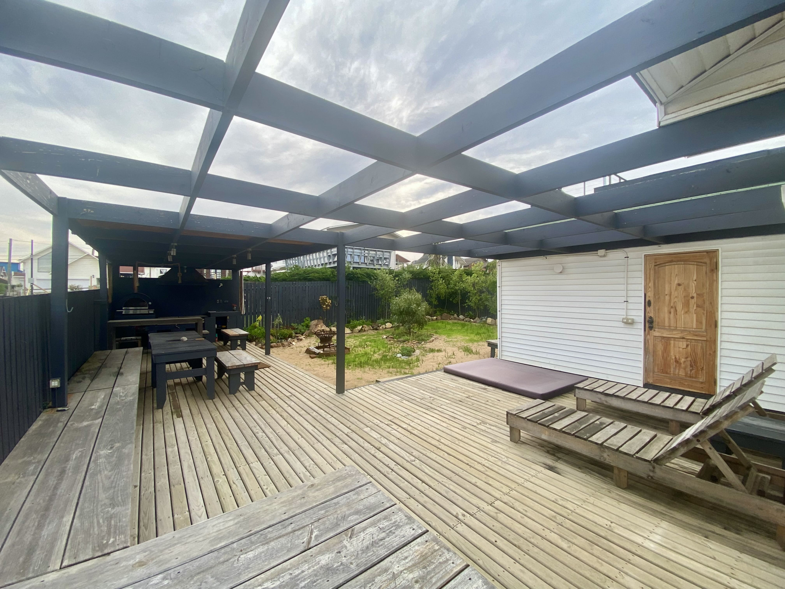 El jardín destaca por su quincho full equipado y gran espacio.