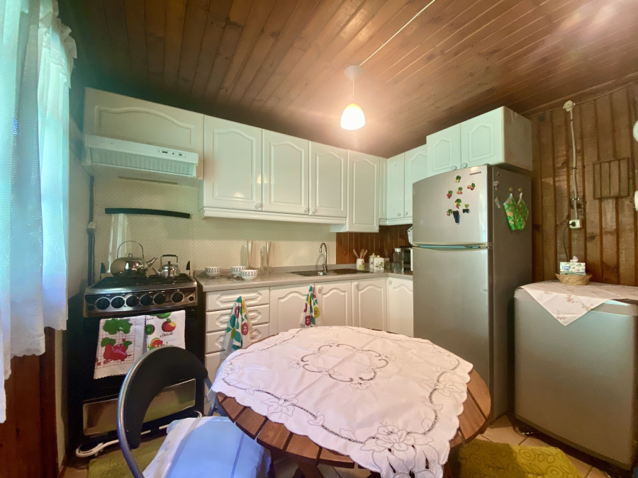 Tiene una cocina full equipada y una mesa para comer tipo comedor de diario y, también una amplia habitación tipo bodega para guardar ropa de cama y toallas, entre otras cosas.