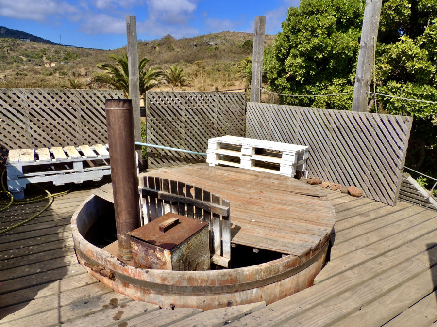 En el exterior, la parcela está provista de una terraza en altura con tinaja caliente y dos bodegas (una bajo la casa y otra container).