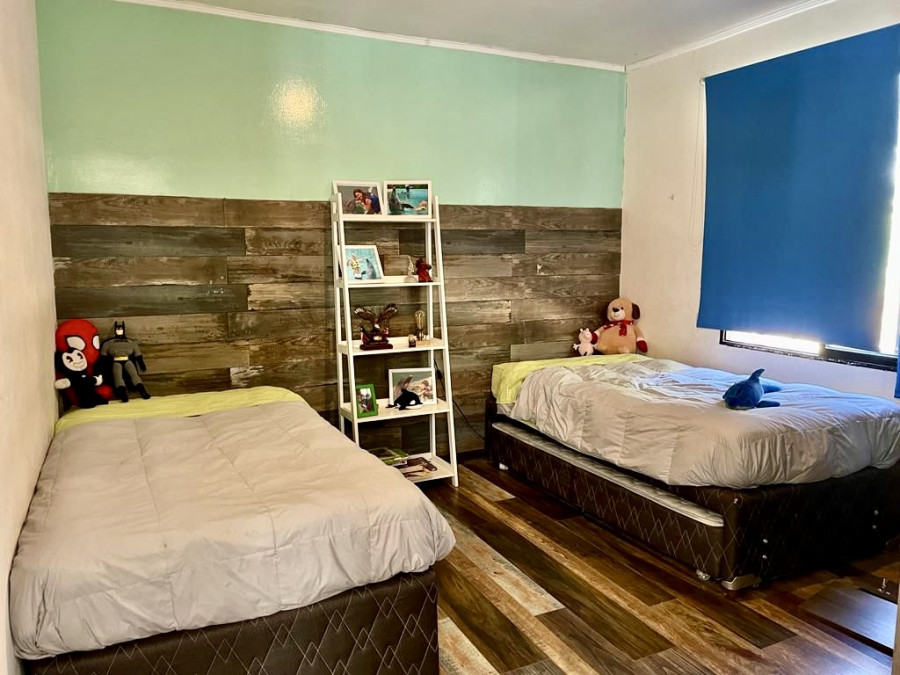 Casa de hormigón completa sin albañilería, techo de teja chilena, logia techada. Además, cuenta con terraza en todo el perímetro de la casa techada.También tiene aire acondicionado en todas las piezas y bodega.
