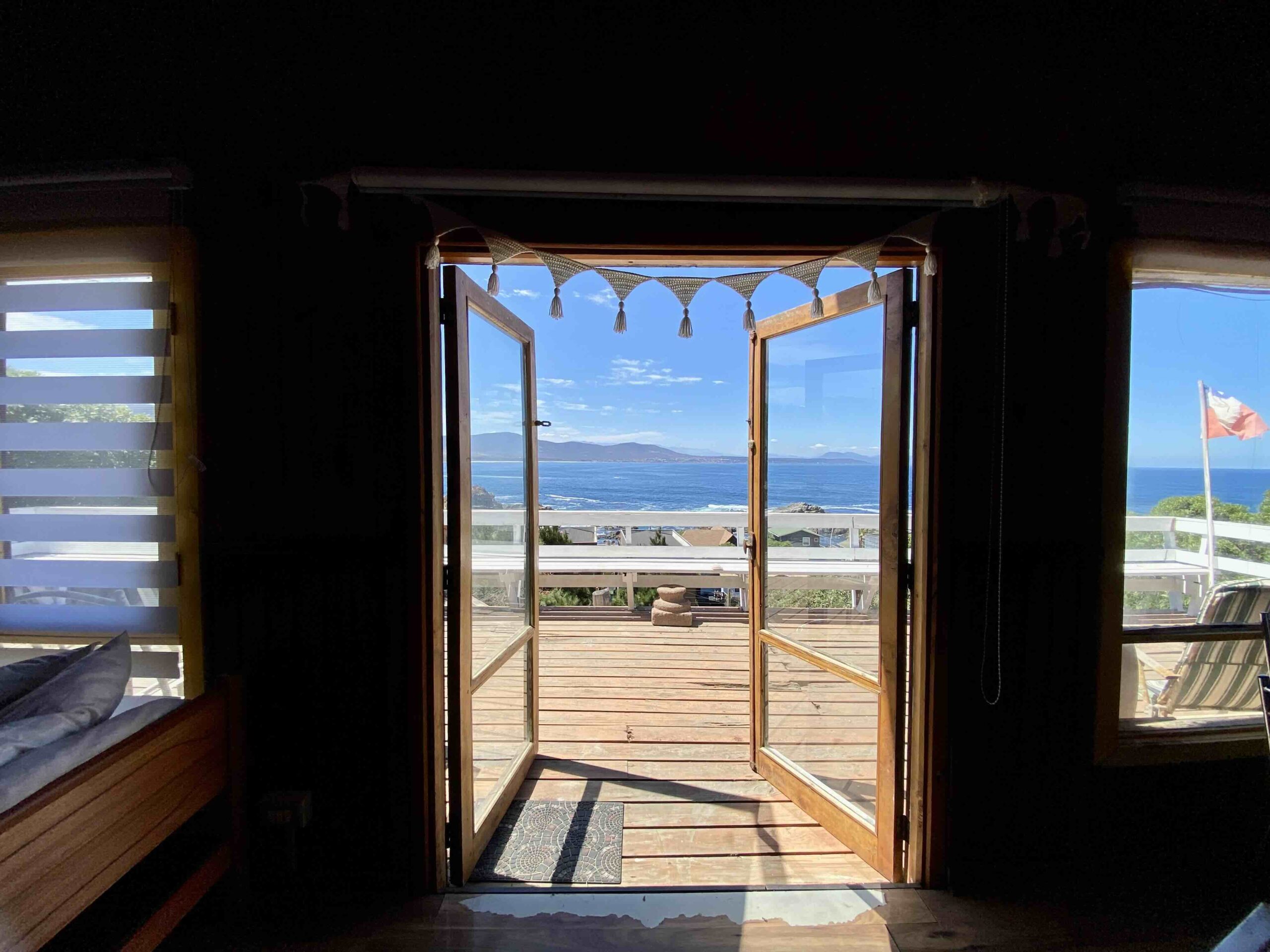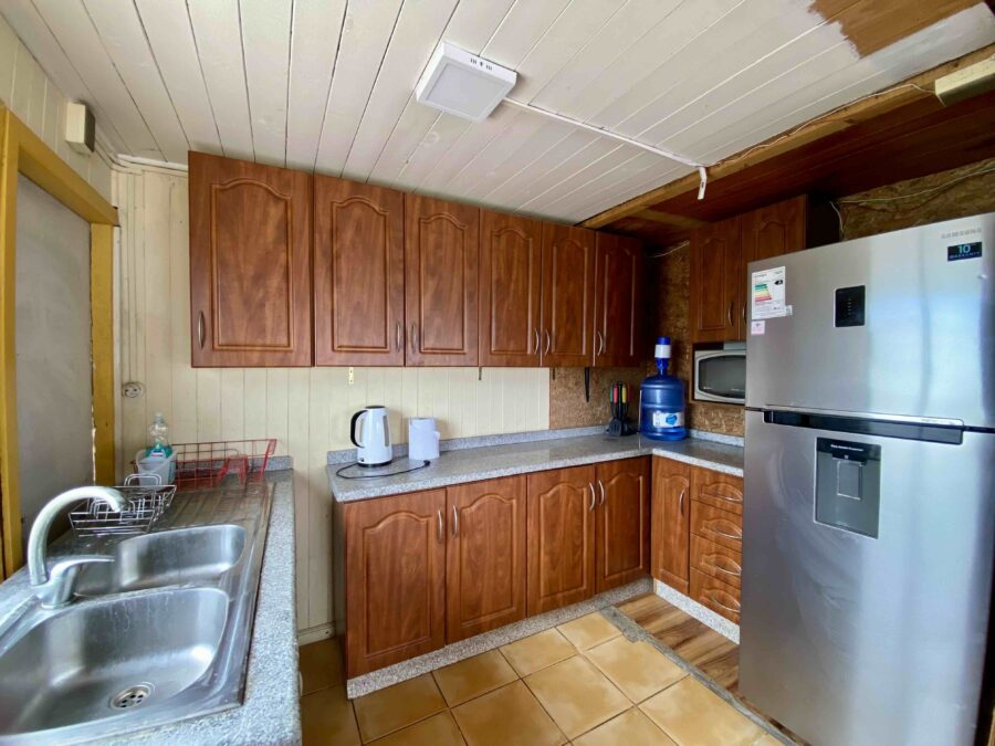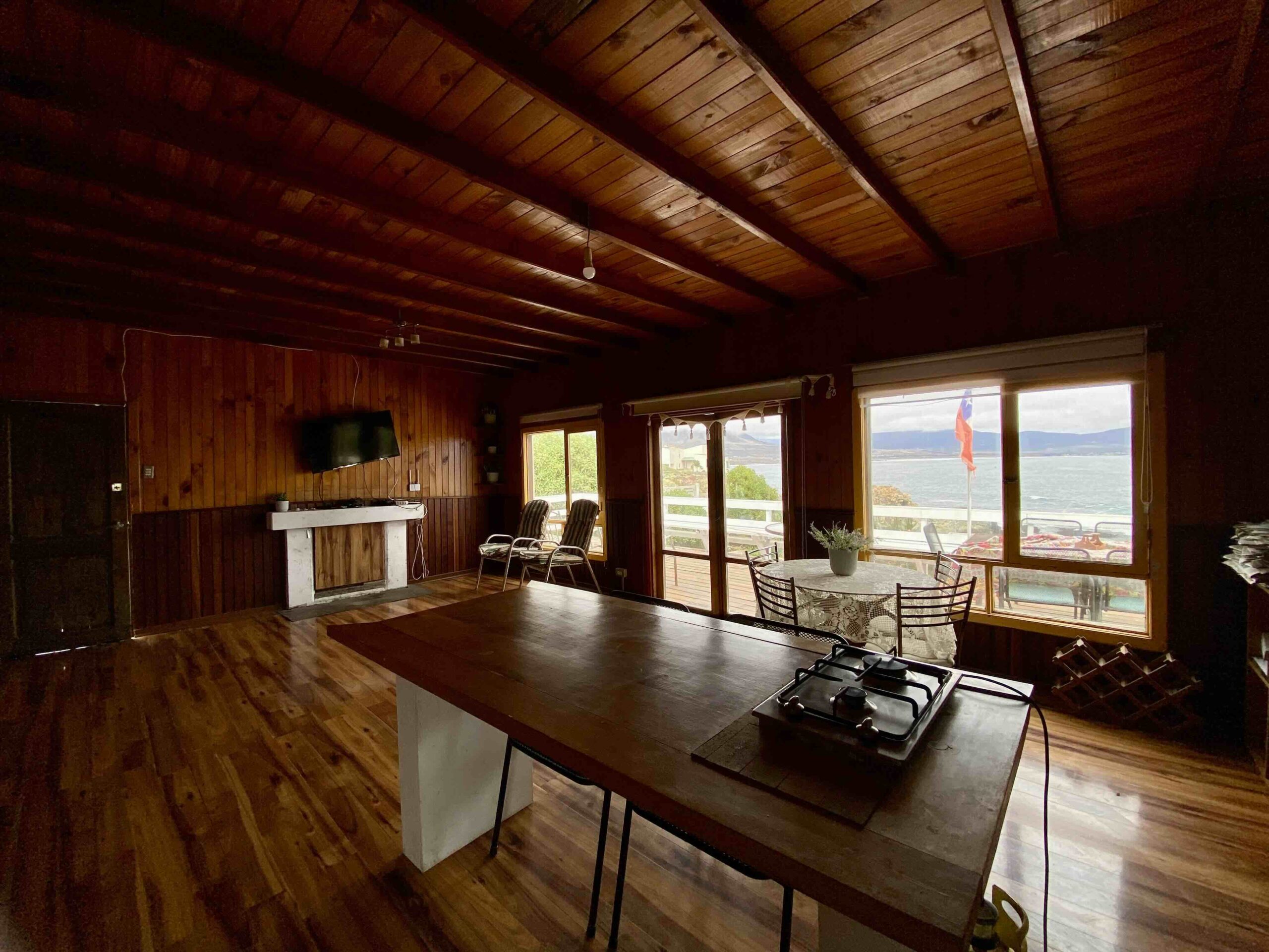 El diseño exterior incorpora terrazas y áreas de descanso, rodeadas de vegetación y vistas despejadas hacia el mar, proporcionando espacios para disfrutar al aire libre. La casa presenta una estructura de madera con amplios ventanales que conectan el interior con el entorno exterior. El living - comedor y cocina se encuentran integrados, con acceso directo a la terraza. El exterior, dispone de una piscina y quincho, ideal para reuniones y actividades al aire libre.