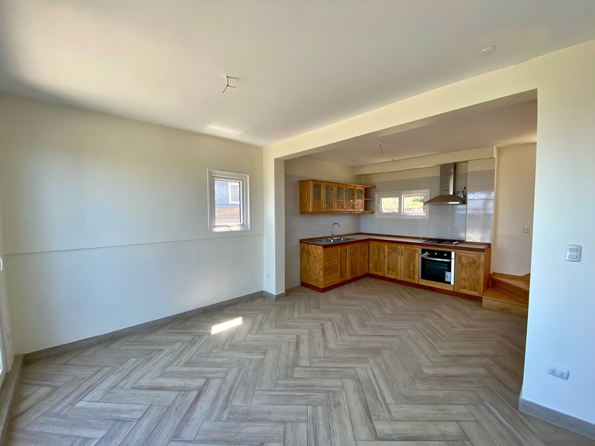 Casas de 3 pisos. Primer piso de hormigón armado y terrazas con barandas de cristal templado. Ventanas con termopaneles y marcos de PVC de 2 y 3 dormitorios, todas con 2 baños.