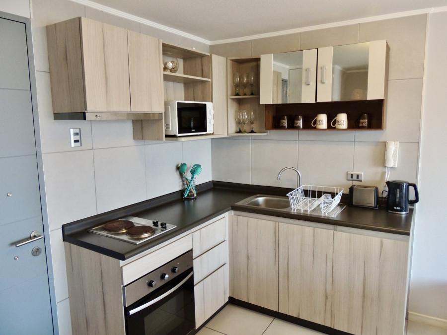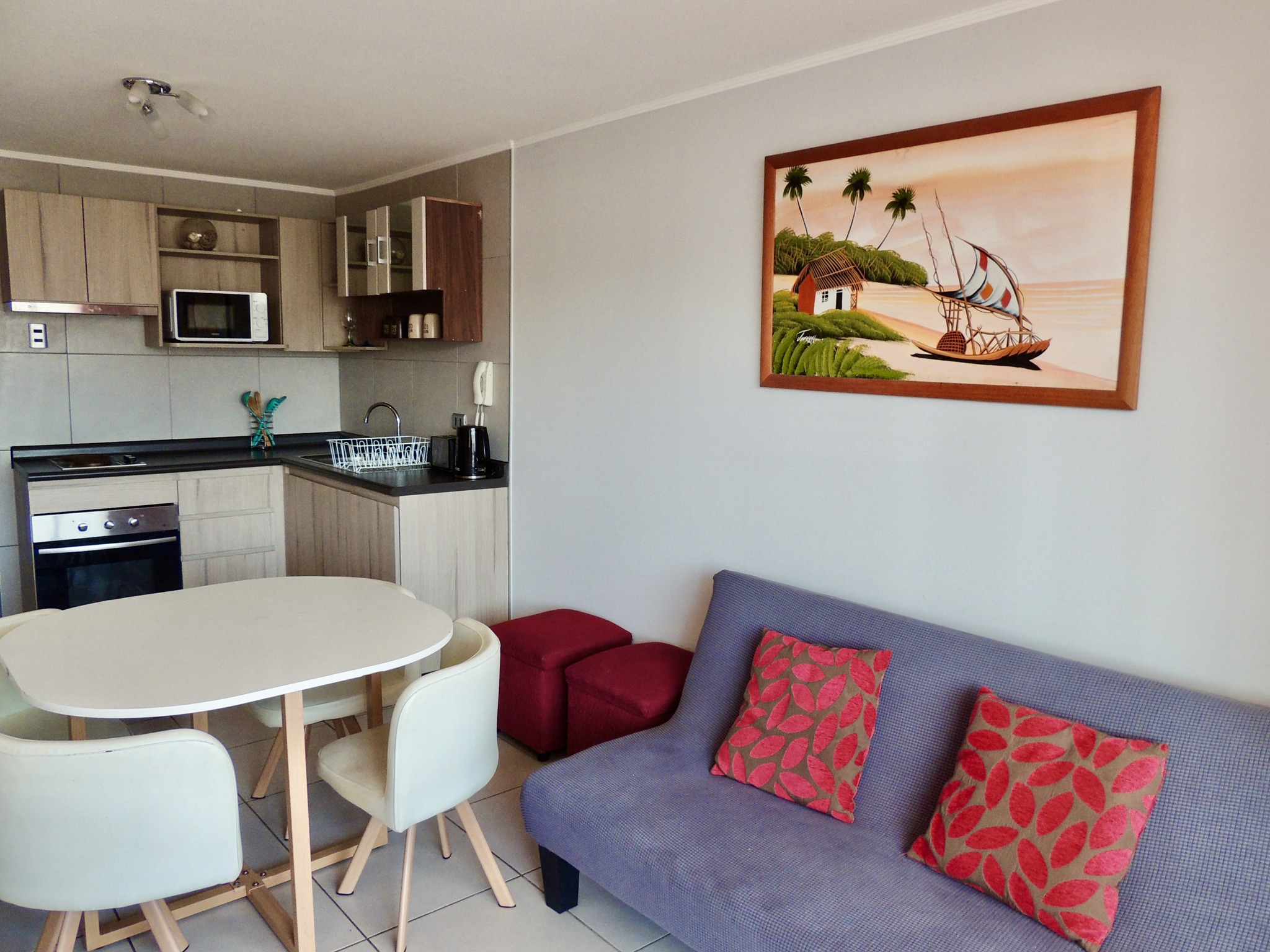 Moderno departamento en condominio Bordemar ubicado frente a la playa a pasos de ferias artesanales, centros de buceo, restaurantes y otras atracciones turísticas propias de la zona.Cuenta con una cómoda habitación en suite con salida a la terraza, una habitación pequeña ideal para vacacionar con hijos y dos baños completamente equipados. Su minimalista cocina americana que da hacia el living con salida a la terraza invita a mantener el ambiente social en todo momento. El departamento incluye un cómodo estacionamiento con entrada por la avenida principal y bodega.