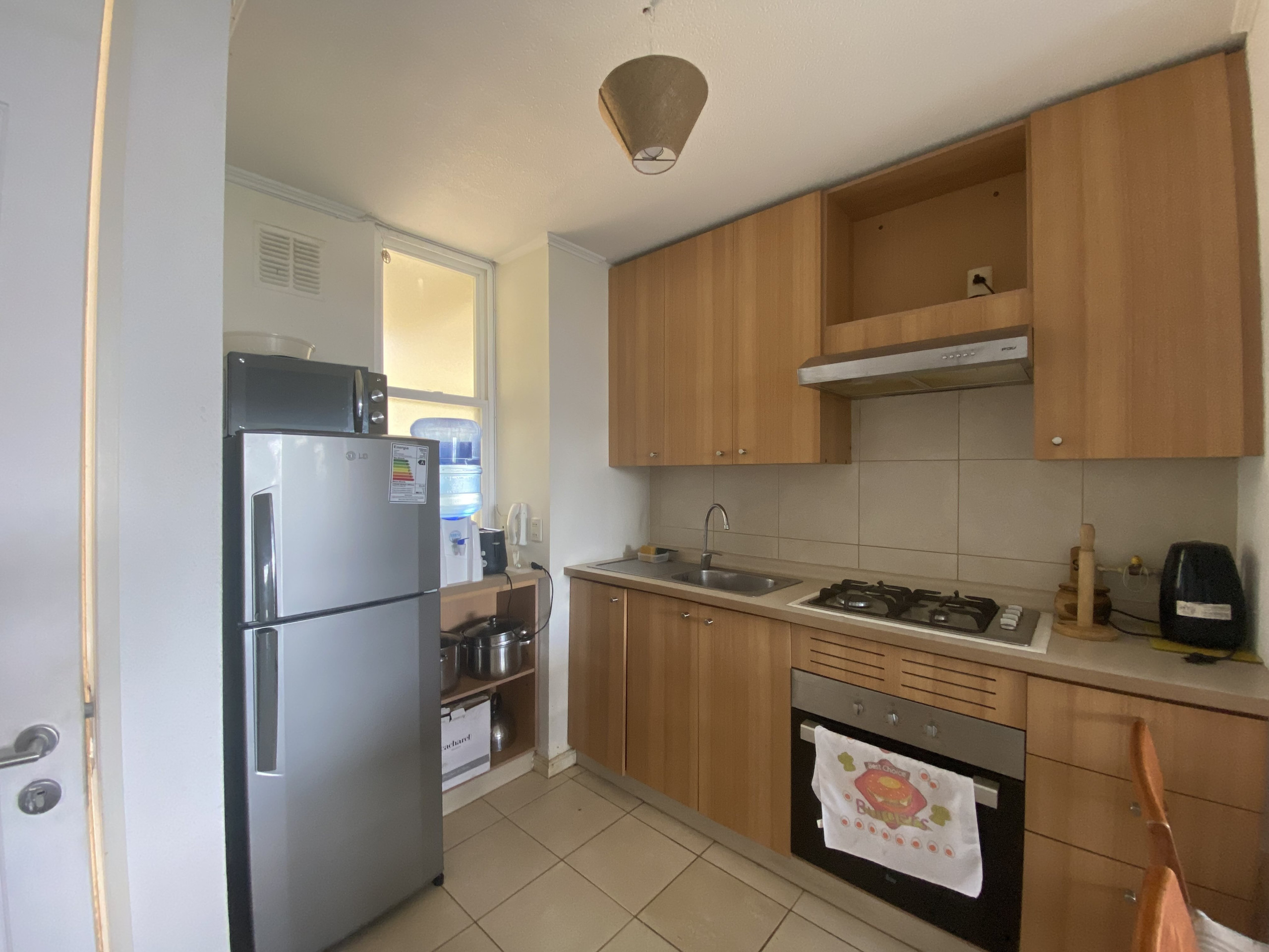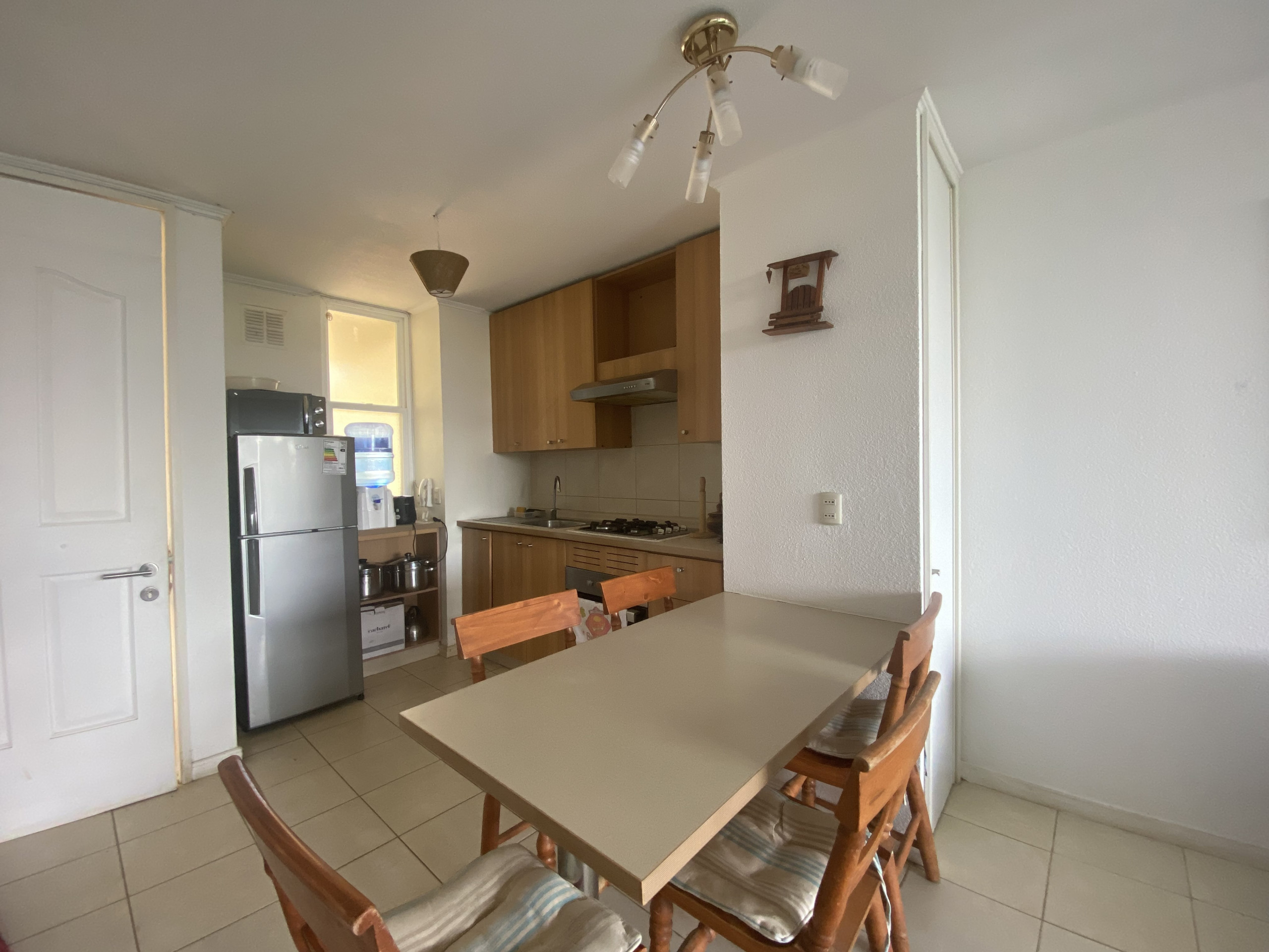 La propiedad nos recibe con una práctica cocina americana y un amplio living-comedor con entrada de luz natural y acceso directo a un acogedor patio, ideal para compartir en familia.