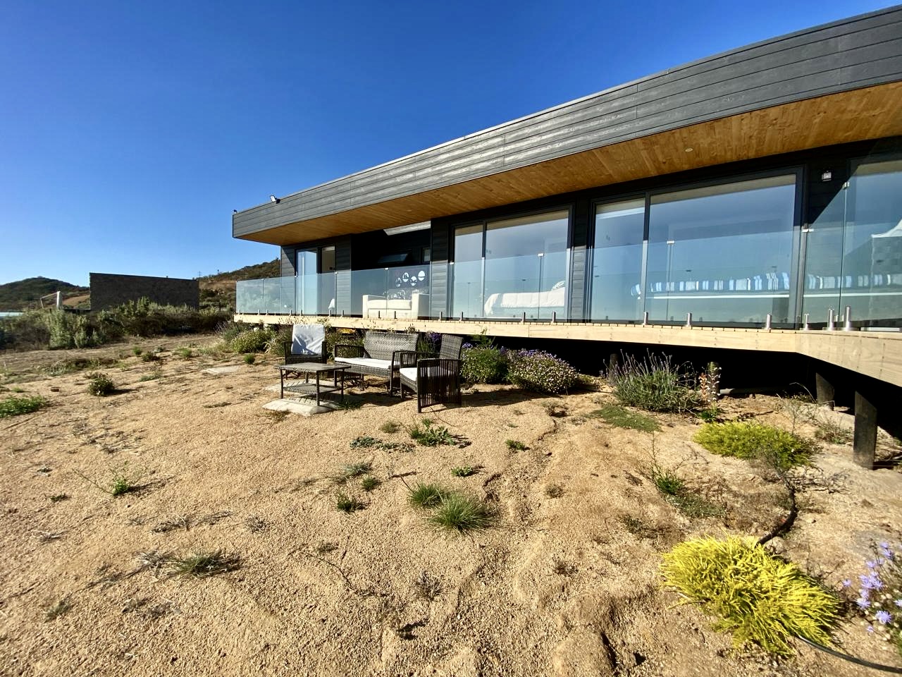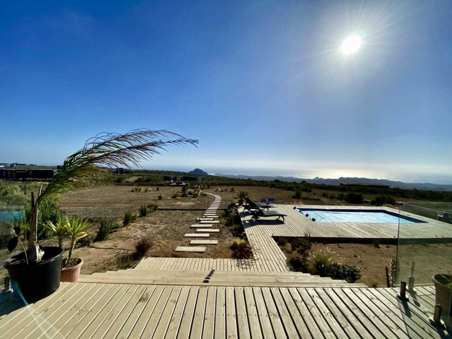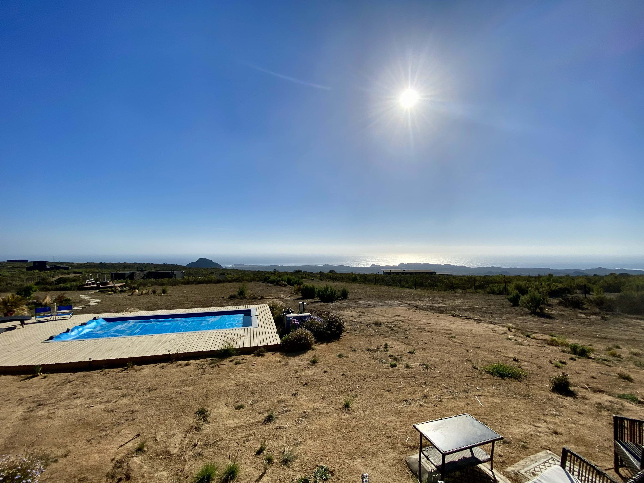 El exterior, cuenta con un quincho, amplia y cómoda terraza para contemplar preciosos atardeceres, piscina con bomba de calor y tinaja.Condominio Rocas del Mar es una parcelación exclusiva a tan solo 2 horas de Santiago. Cuenta con acceso controlado 24/7, amplios caminos iluminados con luz tenue para no interferir con sus noches estrelladas, caminos mantenidos siempre en excelente estado, y conexión eléctrica subterránea. Estas parcelas de 5000 M2 con hermosa vista al mar o al valle están rodeadas de cerros con flora y fauna nativa que te invitara a disfrutar de un ambiente campestre y playero al mismo tiempo.