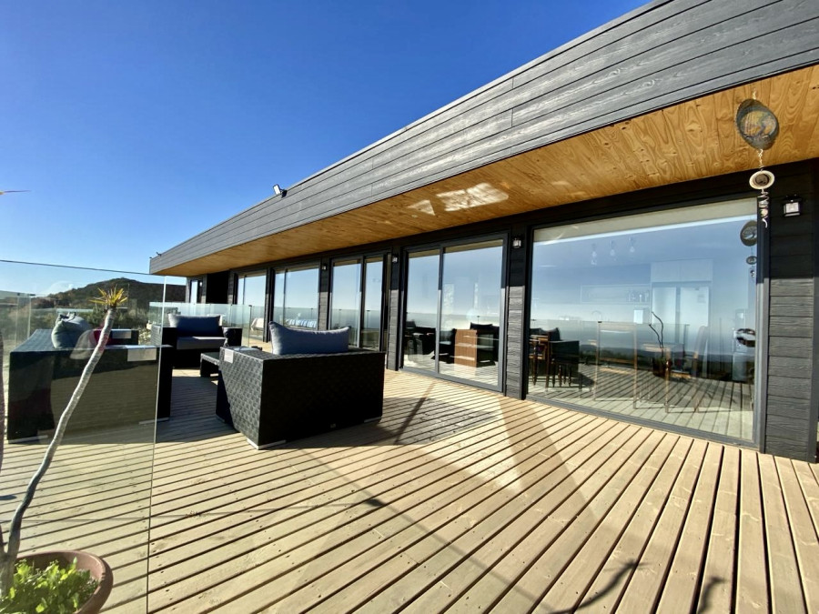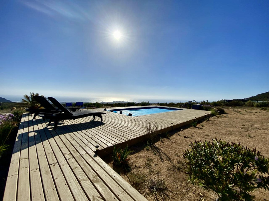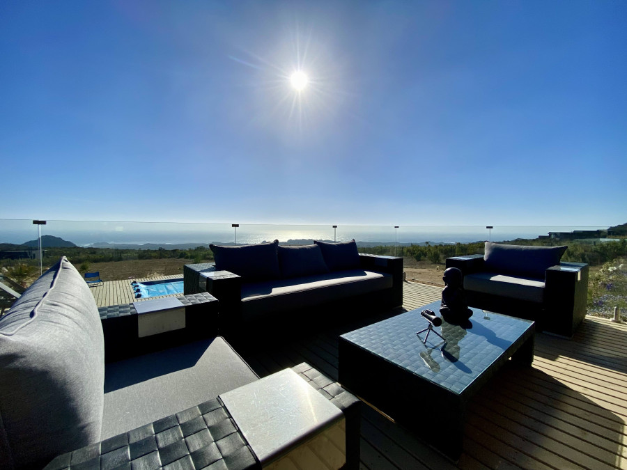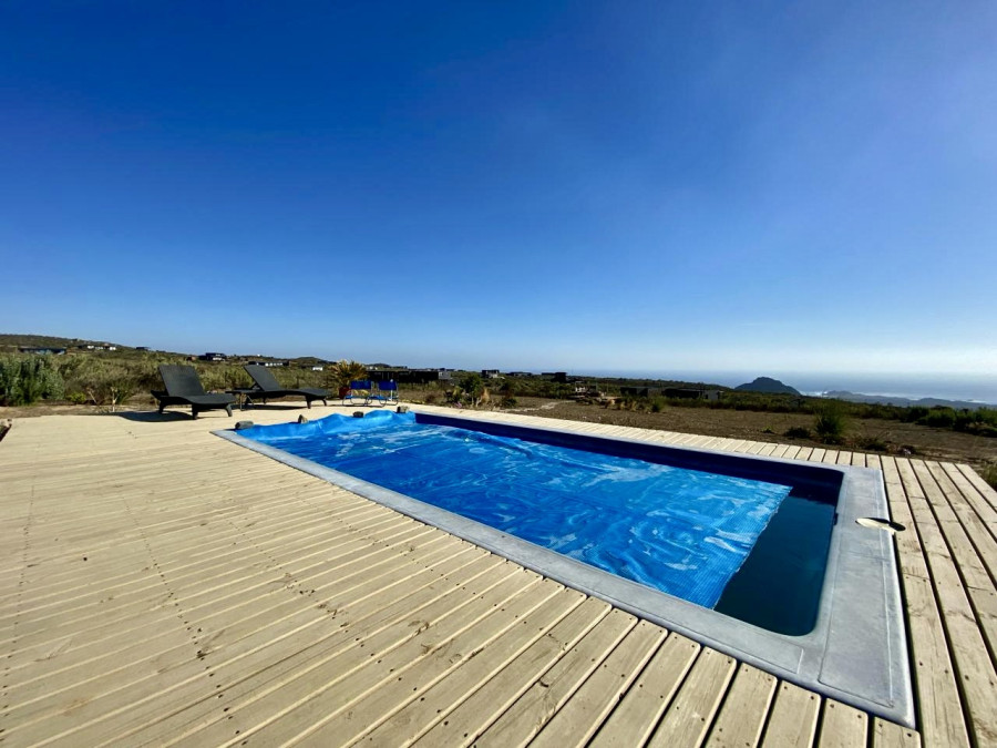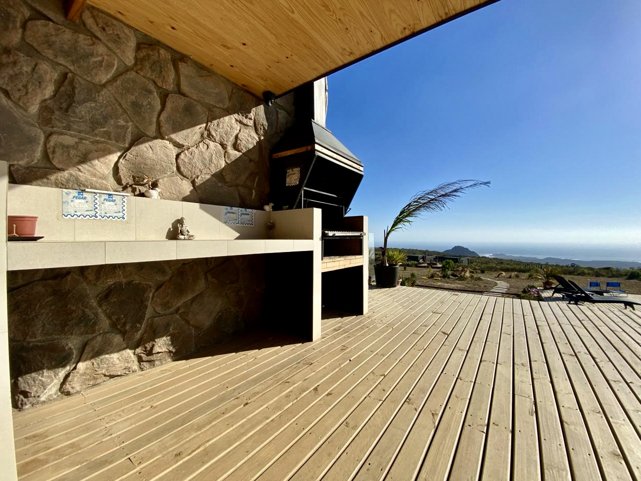 El exterior, cuenta con un quincho, amplia y cómoda terraza para contemplar preciosos atardeceres, piscina con bomba de calor y tinaja.Condominio Rocas del Mar es una parcelación exclusiva a tan solo 2 horas de Santiago. Cuenta con acceso controlado 24/7, amplios caminos iluminados con luz tenue para no interferir con sus noches estrelladas, caminos mantenidos siempre en excelente estado, y conexión eléctrica subterránea. Estas parcelas de 5000 M2 con hermosa vista al mar o al valle están rodeadas de cerros con flora y fauna nativa que te invitara a disfrutar de un ambiente campestre y playero al mismo tiempo.