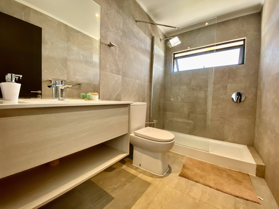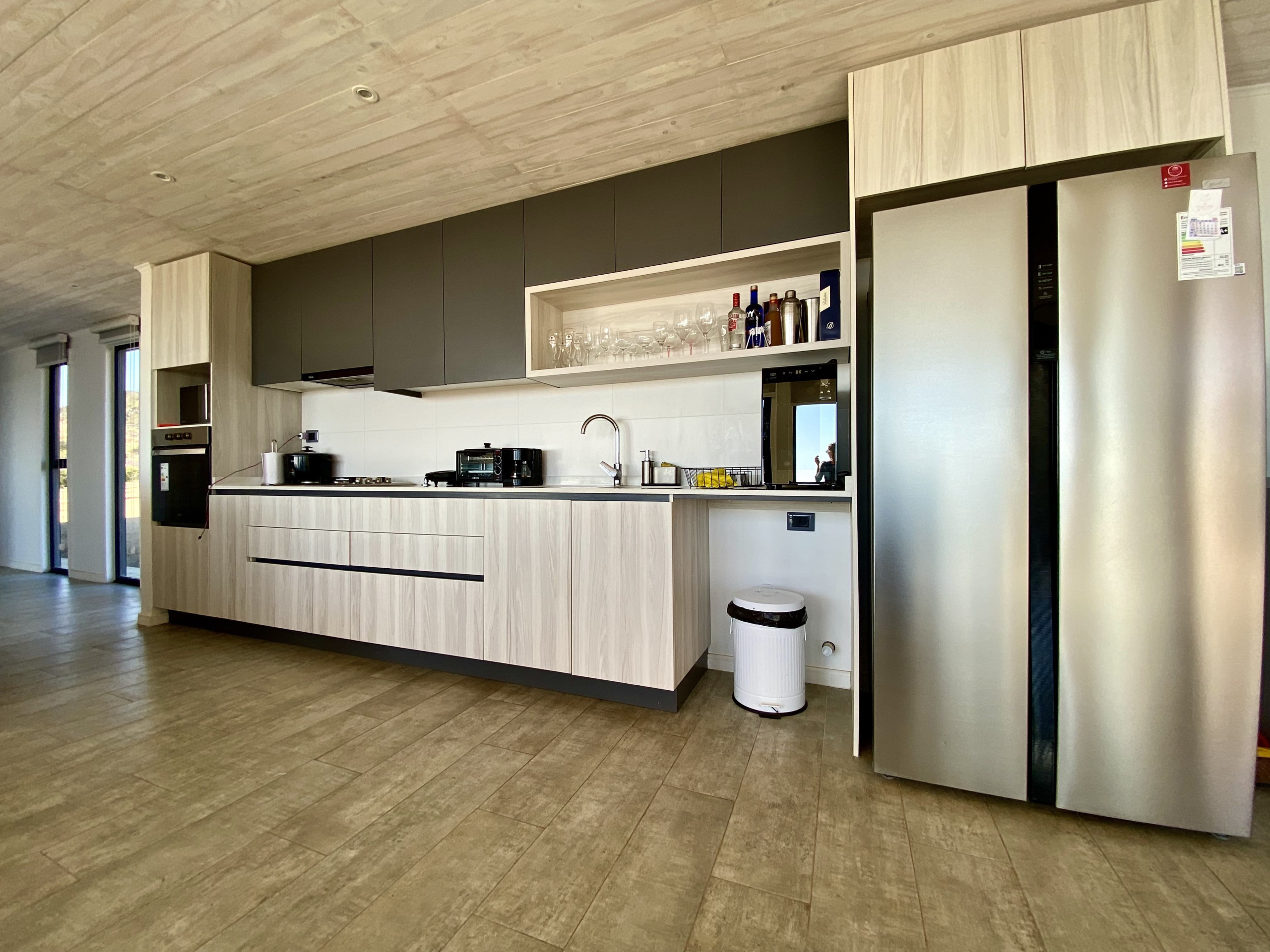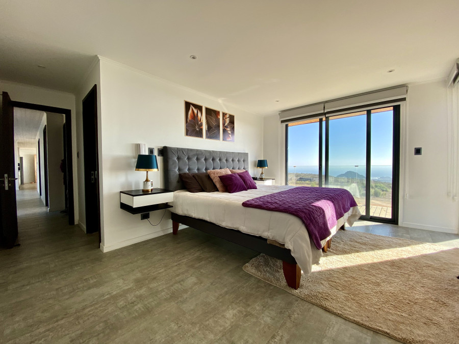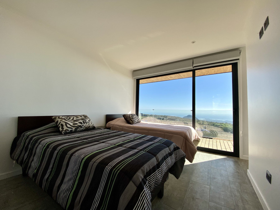 Al entrar, la casa nos recibe con un amplio sector abierto con vista al mar que incluye comedor-living y cocina full equipada. Este espacio conecta con un pasillo en el que se encuentran 2 piezas y un amplio y moderno baño y, al final, se encuentra la habitación en suite. Todas las piezas tienen vista al mar.