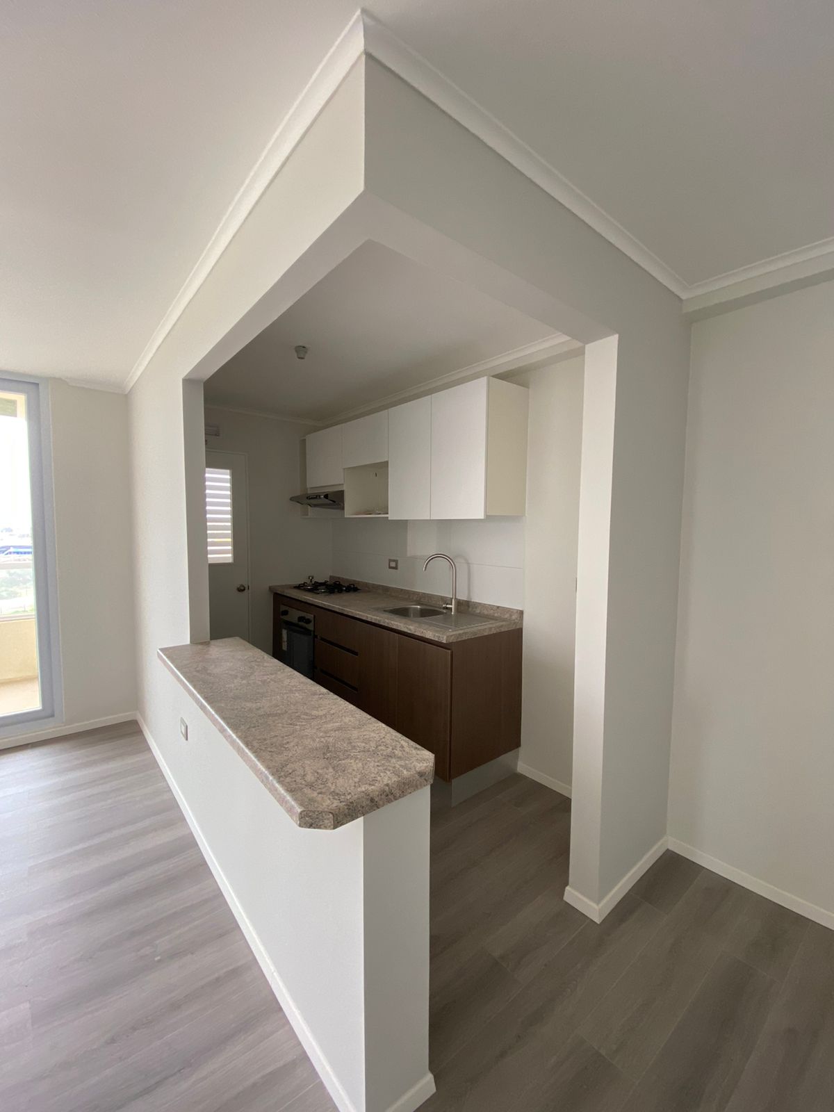 Esta propiedad sin uso, cuenta con tres dormitorios, un baño, cocina equipada integrada al living comedor, balcón, logia, un estacionamiento y una amplia bodega.
