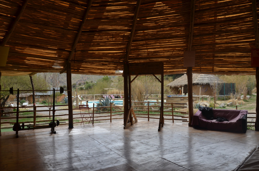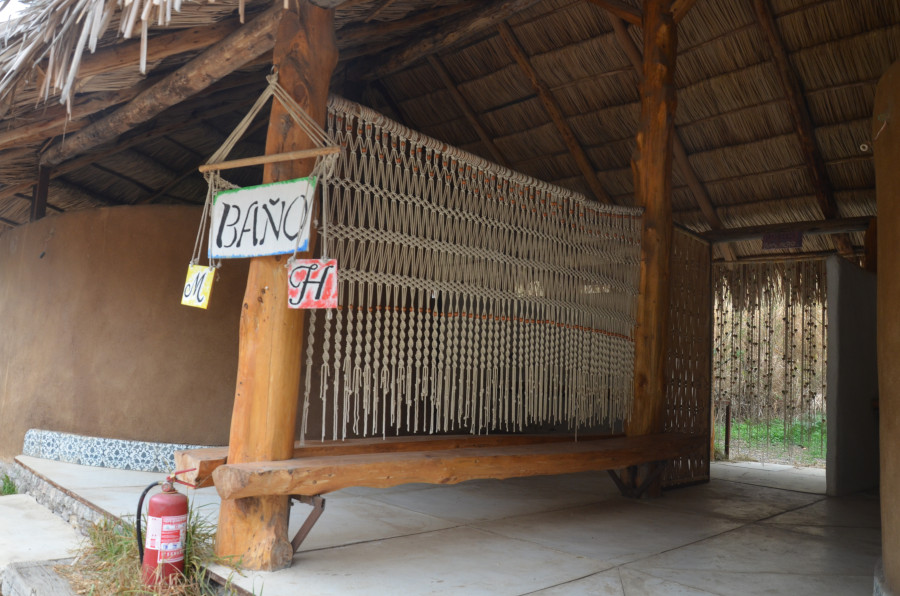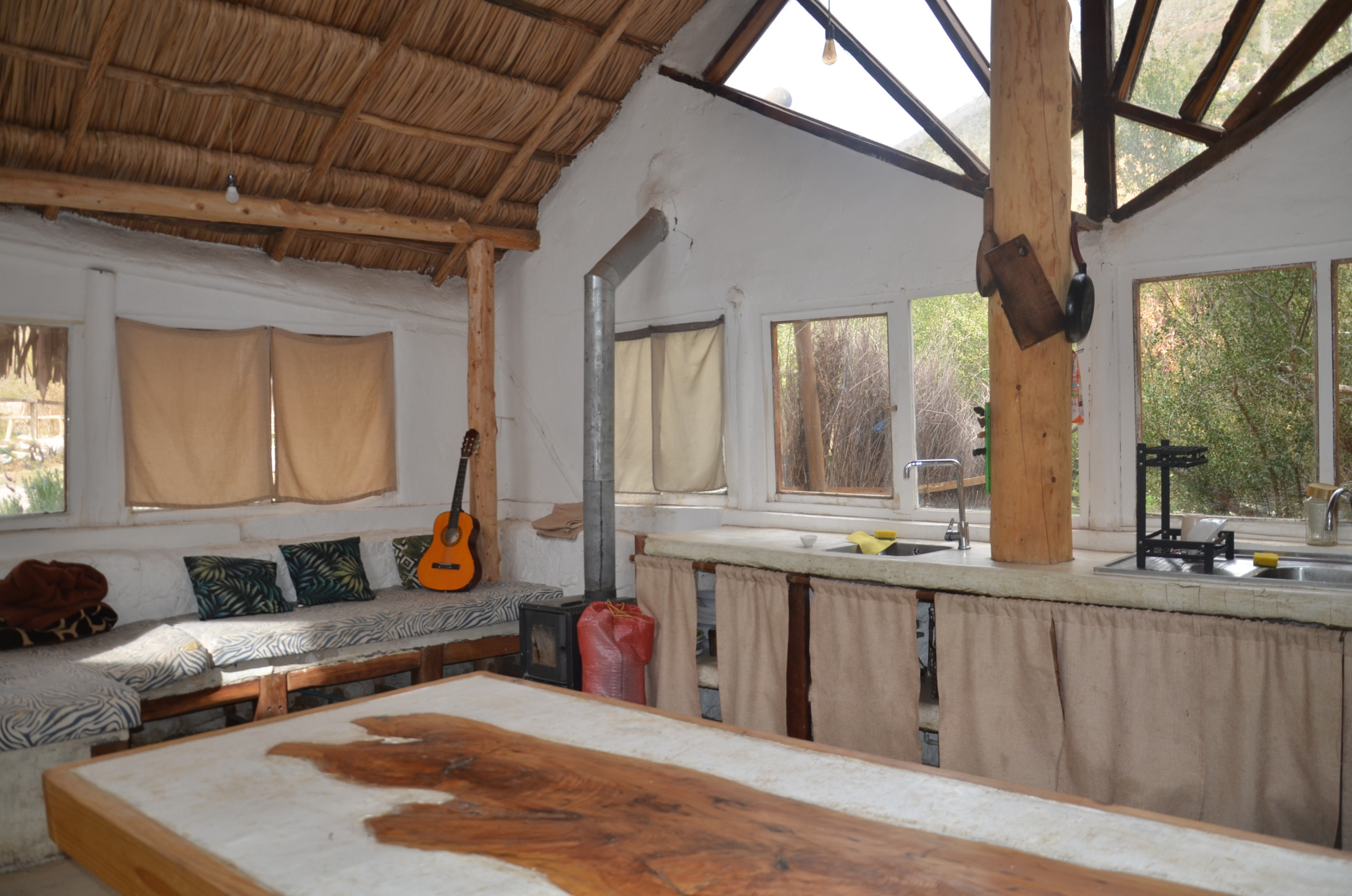 Las construcciones categorizada como bioconstrucción, son de adobe, las puertas y ventanas recicladas-antiguas, algunos pisos son mosaicos muy bien logrados, otros de cemento pulido.
