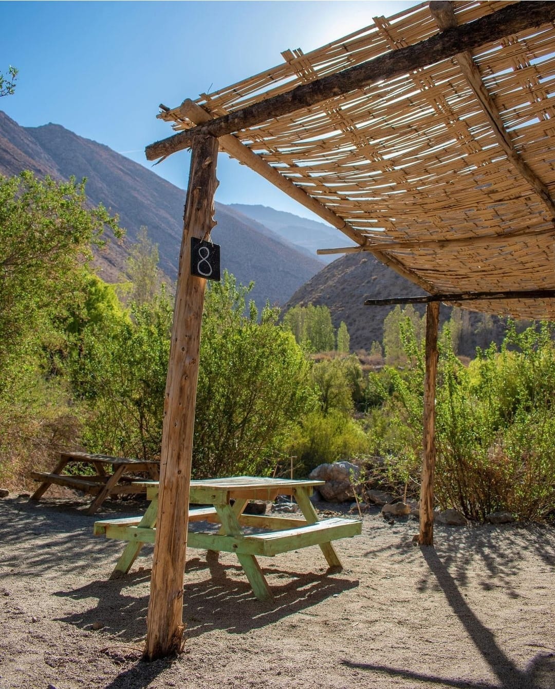El complejo cuenta con una casa, dos cabañas, un lodge, gran muro de escalada, piscina, cancha de voleibol, 11 sitios de camping con luz y 4 pozones ambientadas en el río. Posee agua proveniente del APR local más una vertiente.